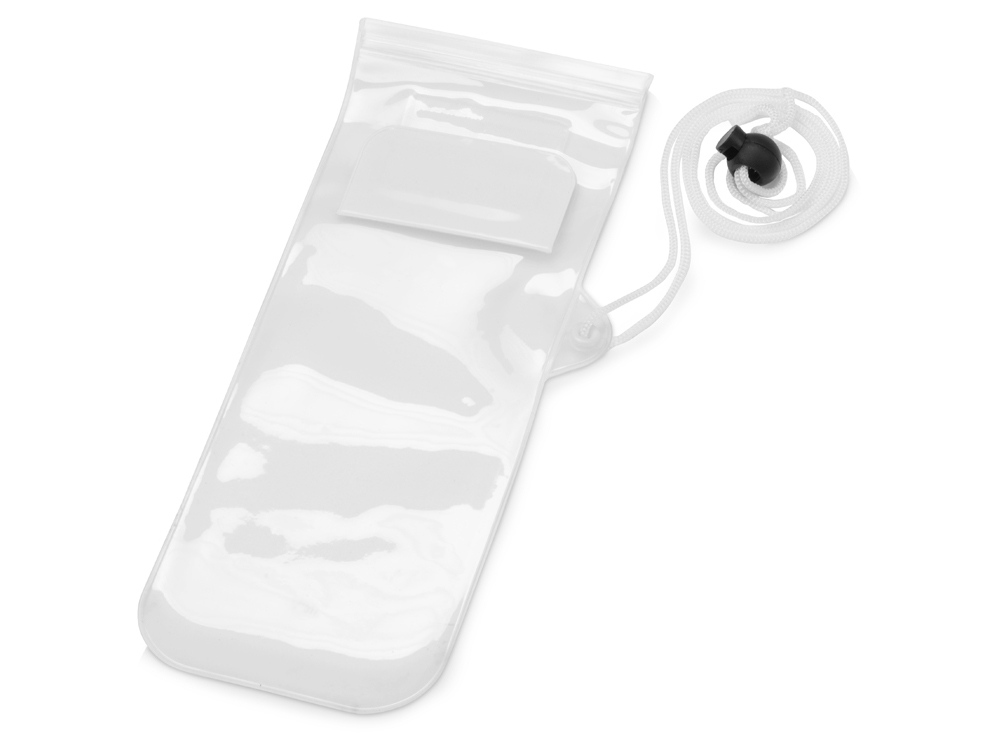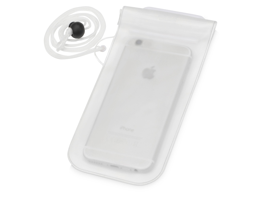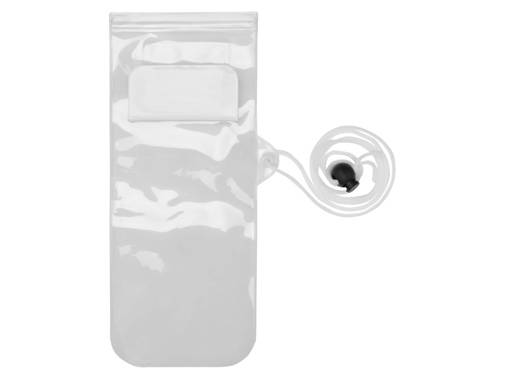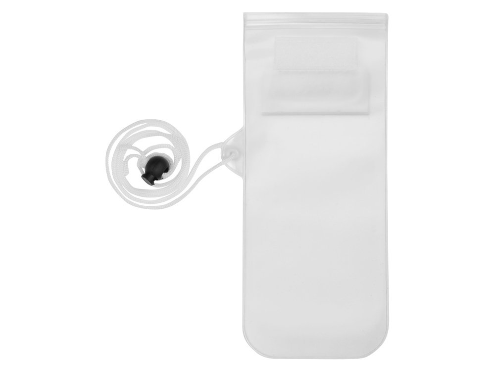 Влагостойкий чехол Mambo. Чехол с матовой прозрачной задней панелью, прозрачным окном для тач скринов спереди, замком - застежкой и цветным клапаном на застежке-липучке. Шнурок на шею с кулиской высотой 50 см. ПВХ.