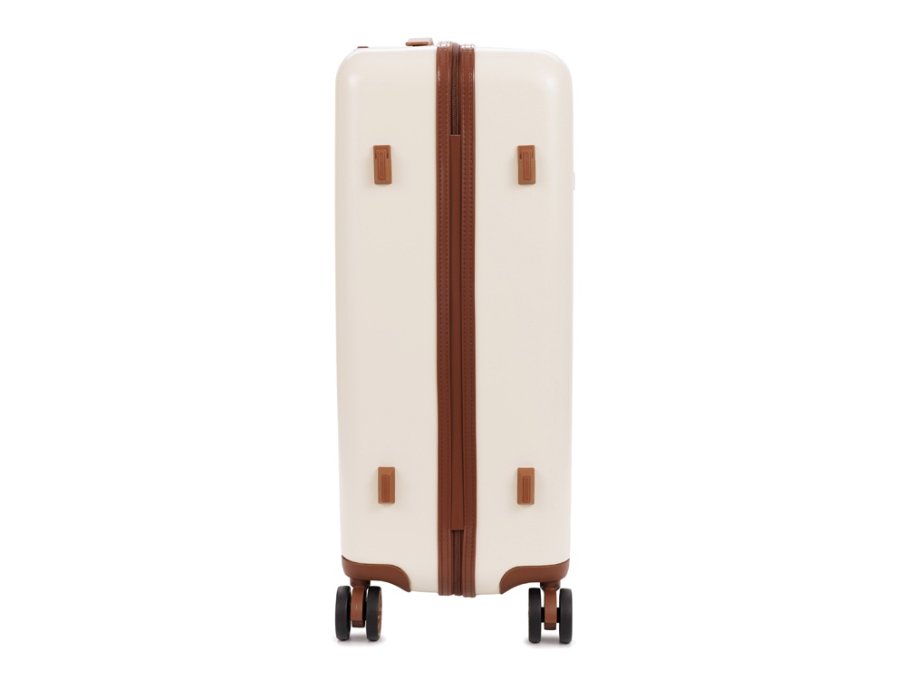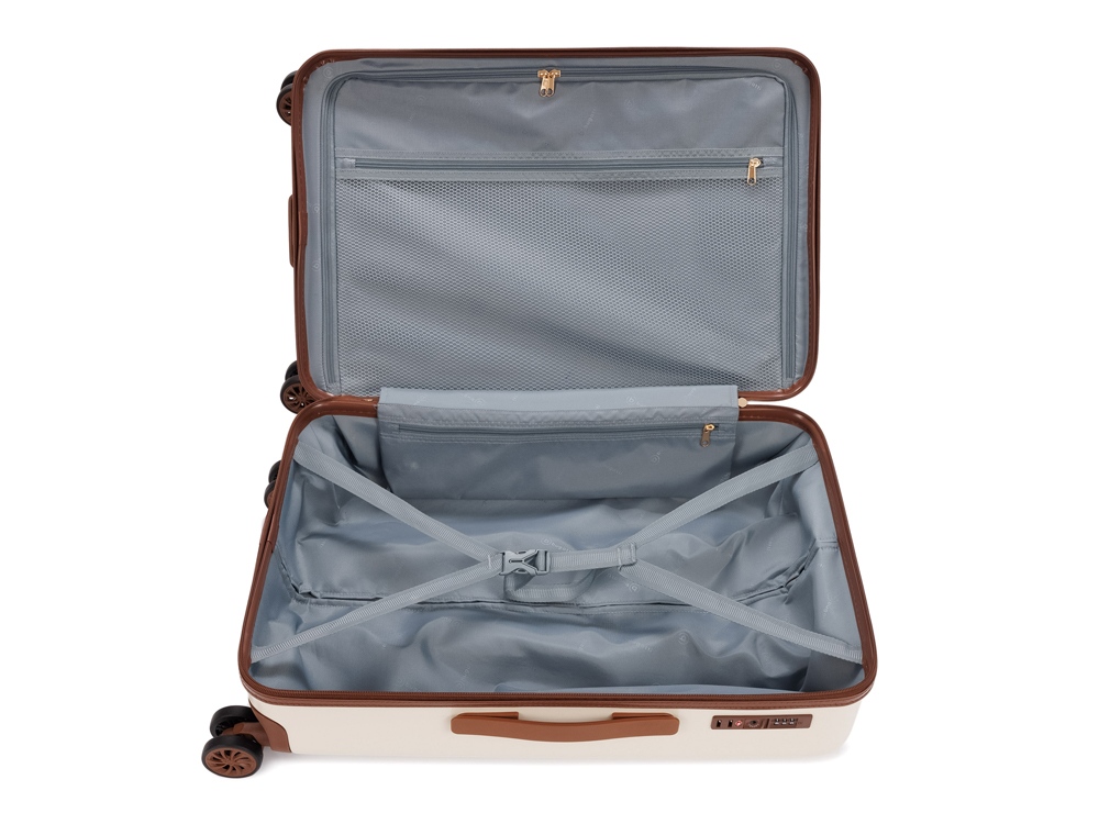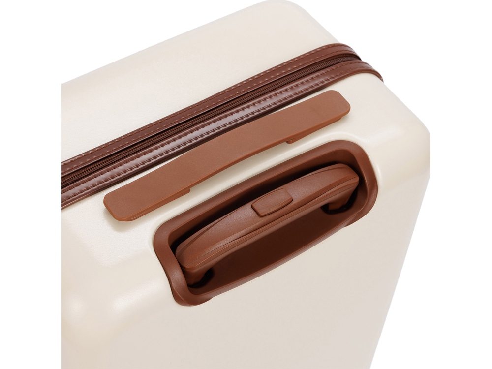 AMELIA воплощает собой неповторимый образ, сочетающий эстетику ретро с современной функциональностью. Вся товарная линейка представлена в великолепных темно-изумрудном и кремовом оттенках. Контрастные детали насыщенного коричневого цвета, бронзовые ручки и фурнитура идеально дополняют дизайн, подчеркивают индивидуальность и выразительность каждой модели. Изготовленные из высококачественного АБС-пластика и поликарбоната, чемоданы AMELIA обладают удивительной прочностью и легкостью. Четыре резиновых колеса с бесшумным ходом и возможностью поворота на 360° обеспечивают плавное передвижение по любой поверхности, сохраняя при этом полную маневренность. Интегрированный замок TSA с трехзначным кодом гарантирует защиту вашего багажа от несанкционированного доступа. Продуманная концепция больших отделений с перегородкой на молнии и дополнительными карманами максимально оптимизирует использование внутреннего пространства. Легкая телескопическая ручка с несколькими положениями фиксации обеспечивает комфорт в использовании для людей разного роста. Удобные ручки сбоку и на дне корпуса облегчают загрузку и выгрузку чемодана. Боковые держатели позволяют разместить дополнительные дорожные аксессуары.