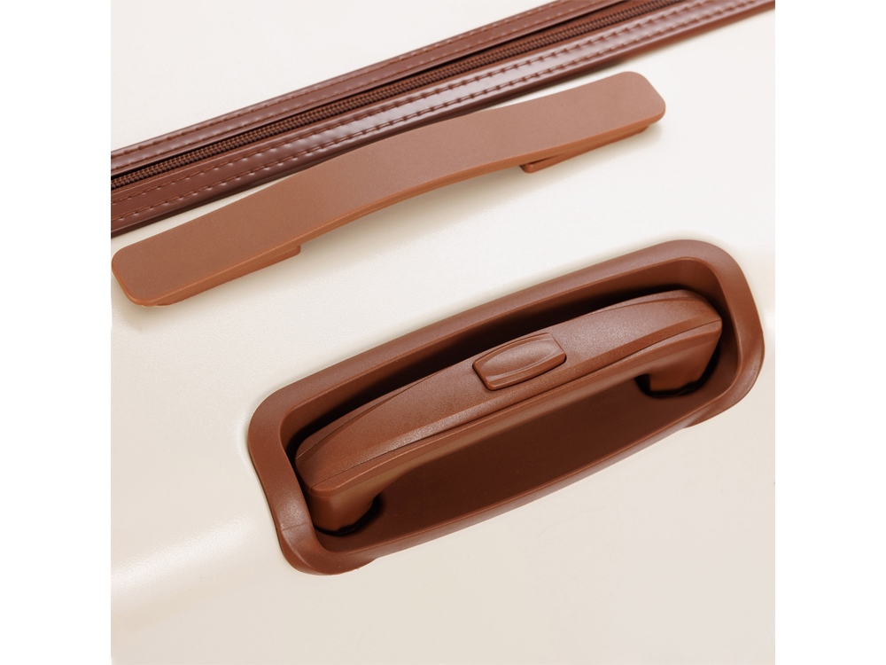 AMELIA воплощает собой неповторимый образ, сочетающий эстетику ретро с современной функциональностью. Вся товарная линейка представлена в великолепных темно-изумрудном и кремовом оттенках. Контрастные детали насыщенного коричневого цвета, бронзовые ручки и фурнитура идеально дополняют дизайн, подчеркивают индивидуальность и выразительность каждой модели. Изготовленные из высококачественного АБС-пластика и поликарбоната, чемоданы AMELIA обладают удивительной прочностью и легкостью. Четыре резиновых колеса с бесшумным ходом и возможностью поворота на 360° обеспечивают плавное передвижение по любой поверхности, сохраняя при этом полную маневренность. Интегрированный замок TSA с трехзначным кодом гарантирует защиту вашего багажа от несанкционированного доступа. Продуманная концепция больших отделений с перегородкой на молнии и дополнительными карманами максимально оптимизирует использование внутреннего пространства. Легкая телескопическая ручка с несколькими положениями фиксации обеспечивает комфорт в использовании для людей разного роста. Удобные ручки сбоку и на дне корпуса облегчают загрузку и выгрузку чемодана. Боковые держатели позволяют разместить дополнительные дорожные аксессуары.
