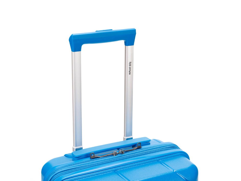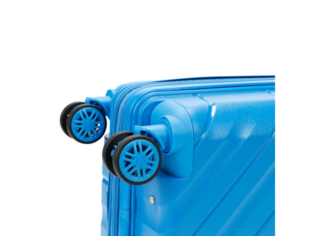 Каждый чемодан из серии В ОТПУСК оборудован удобной ручкой и удивительно легкими двойными колесами, что обеспечивает максимальную маневренность и комфорт во время путешествий.