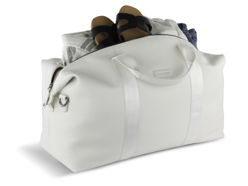 Сумка дорожная BUGATTI Elsa, белая, воловья кожа/полиэстер, 47х22х24 см