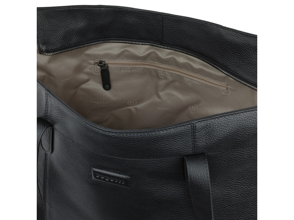 Сумка дорожная женская BUGATTI Elsa, чёрная, воловья кожа/полиэстер, 57х15х37 см