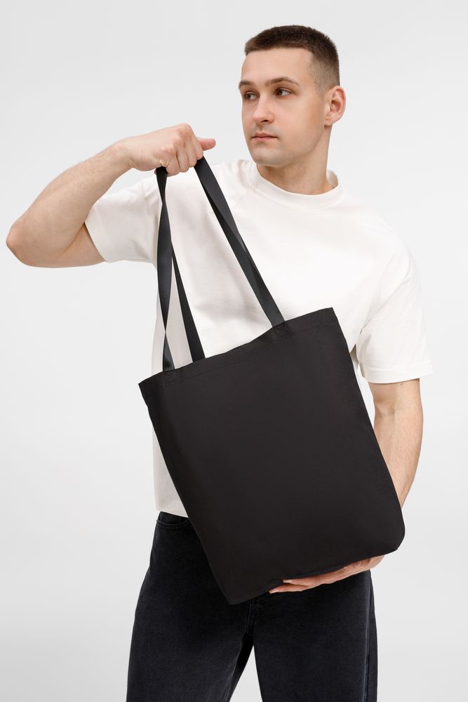 Базовый шопер разработан в рамках единой коллекции одежды и аксессуаров и легко комбинируется с ее элементами. Специально спроектированные лекала и технологии пошива открывают простор для любых вариантов кастомизации и нанесения изображений. На видимой части изделий нет лейблов с айдентикой бренда, а название бренда с уходника легко удалить.