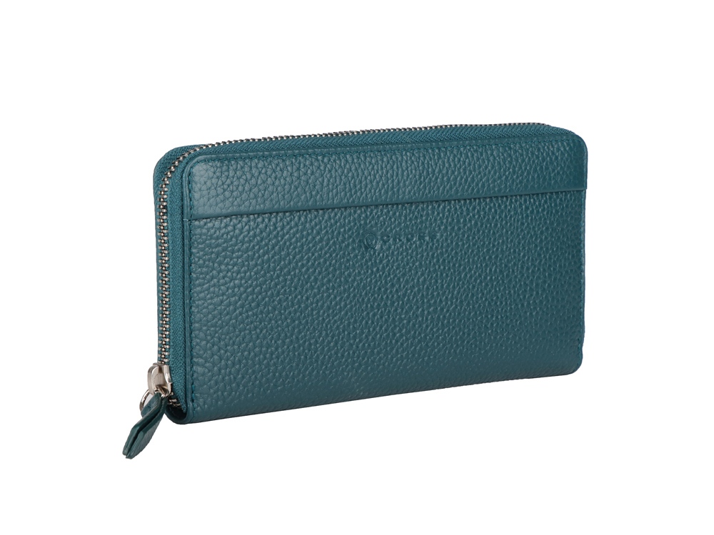 Кошелек закрывается на молнию, включает в себя: одно отделение на молнии, два отделения для купюр, два универсальных отделения, двенадцать отделений для кредитных карт.