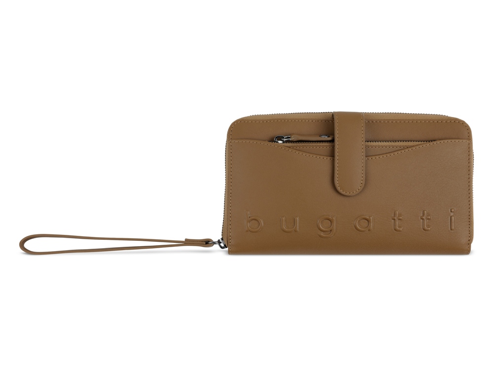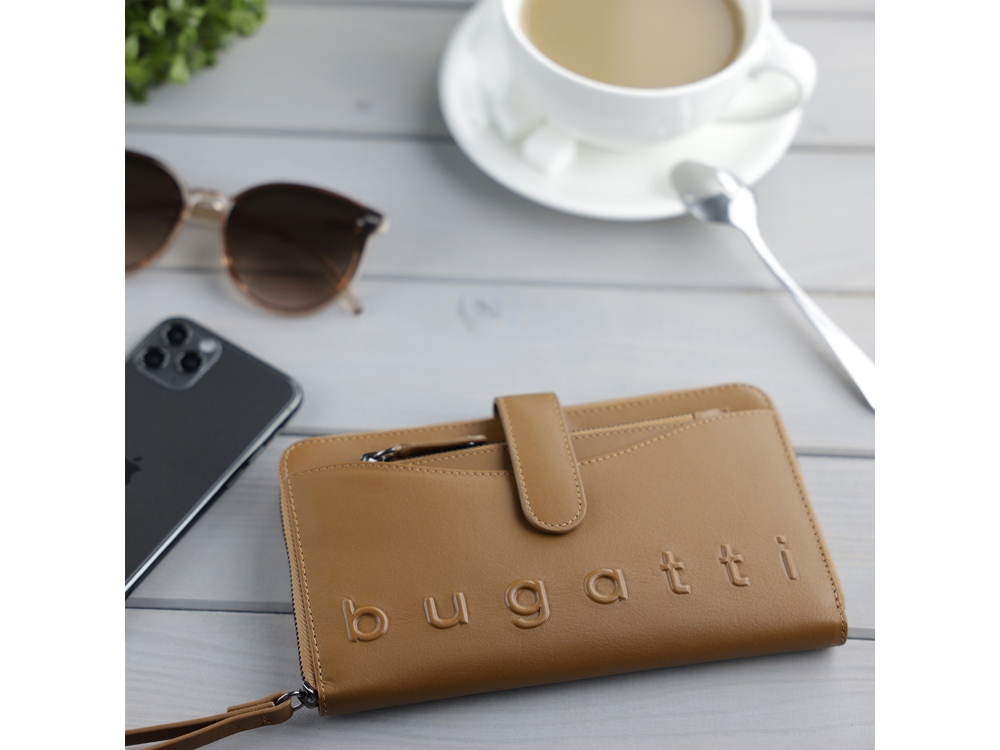 Кошелёк женский BUGATTI Daphne с ключницей, коньячный цвет, воловья кожа/полиэстер, 19х3х11 см