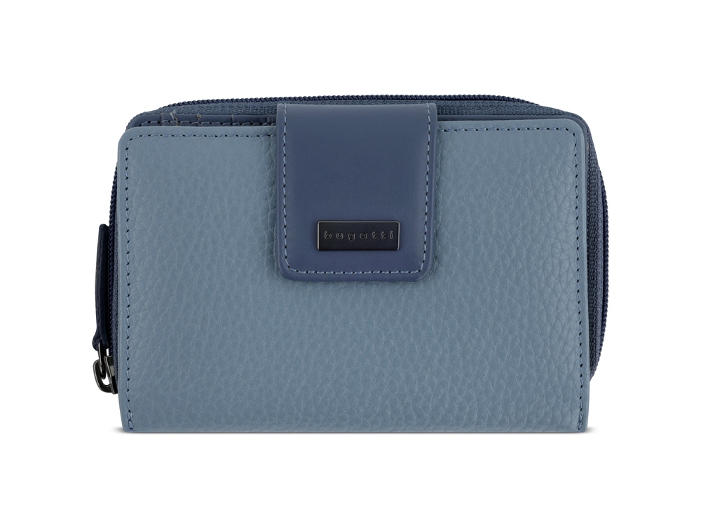 Кошелёк женский BUGATTI Sina, голубой, воловья кожа/полиэстер, 13,7х3х9,5 см
