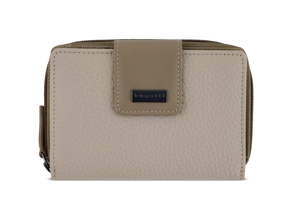 Кошелёк женский BUGATTI Sina, бежевый, воловья кожа/полиэстер, 13,7х3х9,5 см