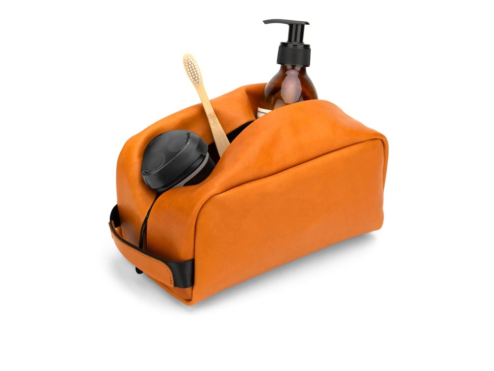 Косметичка, она же Dop Kit, предназначена для хранения и переноски всяких дорожных принадлежностей, предметов гигиены, инструментов или каких-нибудь зарядок для гаджетов. Косметичка изготовлена целиком из натуральной кожи и закрывается на молнию.