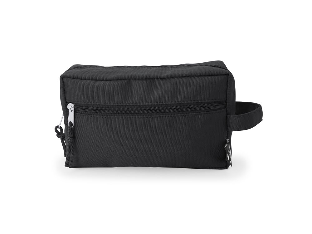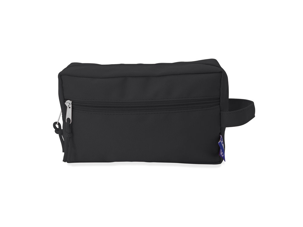 Несессер с двумя отделениями на молнии и ремешком для переноски в тон. Внешняя этикетка с логотипом RPET.