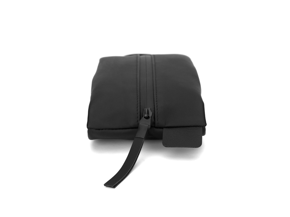 Несессер выполнен из натуральной кожи наппа с влагозащитной пропиткой. Водонепроницаемая молния исключает попадание жидкости внутрь органайзера, поэтому в нём можно хранить важные документы.