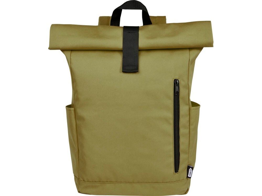 Рюкзак Byron 15,6 объемом 18 л со скручиваемым верхом, изготовленный из переработанного ПЭТ по стандарту GRS, оливковый