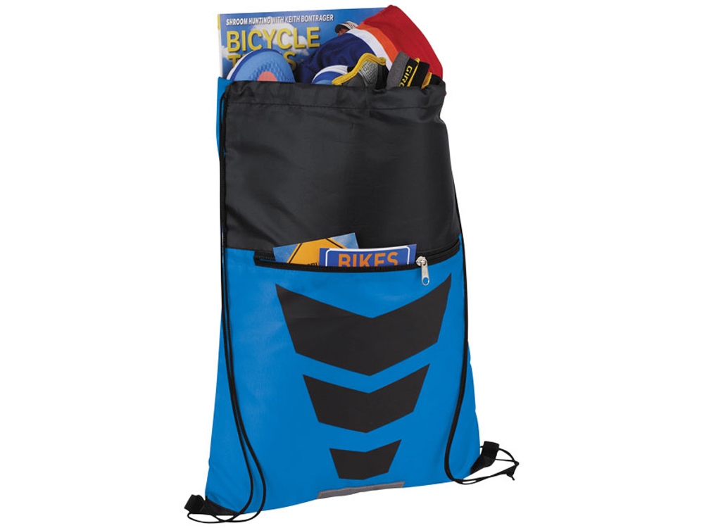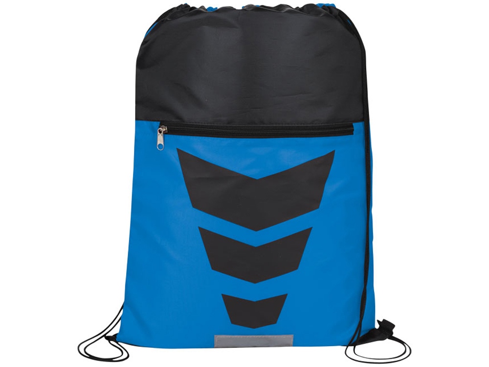 Рюкзак на шнурке Courtside. Рюкзак на шнурке с отражающими деталями в привлекательном дизайне. Он позволит быть вам более видимыми в темноте. Большое основное отделение затягивается на шнурок, небольшой карман на молнии спереди. 210D полиэстер.
