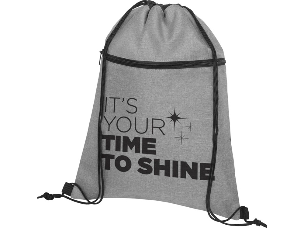 Рюкзак со шнурком и большим основным отделением, закрывающимся затяжкой шнурка черного цвета. Передняя панель оформлена с эффектом меланжевой расцветки, а задняя – черного цвета. Спереди расположен карман на молнии. Прочность до 5 кг. Реальный цвет изделия может незначительно отличаться в зависимости от особенностей набивки, окраски и структуры ткани. 300DПолиэстер, Non-woven polypropylene, 80 g/m2.