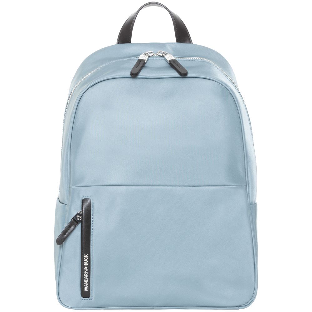 Изготовлен из гладкого влагостойкого нейлона, а также дополнен привлекательной фурнитурой из экокожи и металлизированным логотипом бренда.