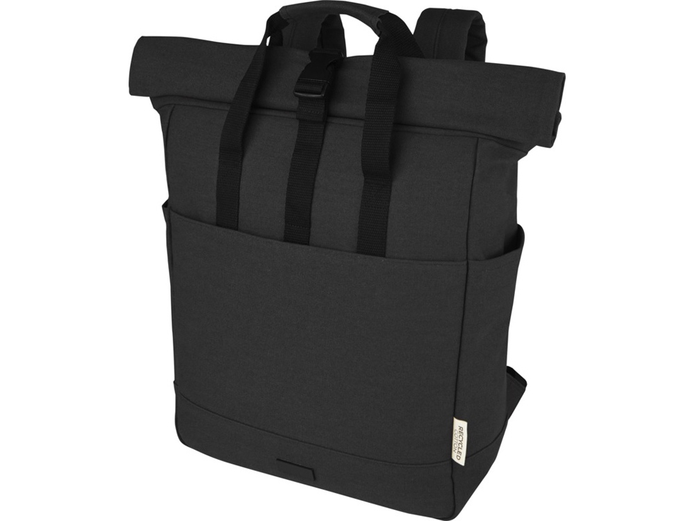 Рюкзак для 15-дюймового ноутбука Joey объемом 15 л из брезента, переработанного по стандарту GRS, со сворачивающимся верхом, черный