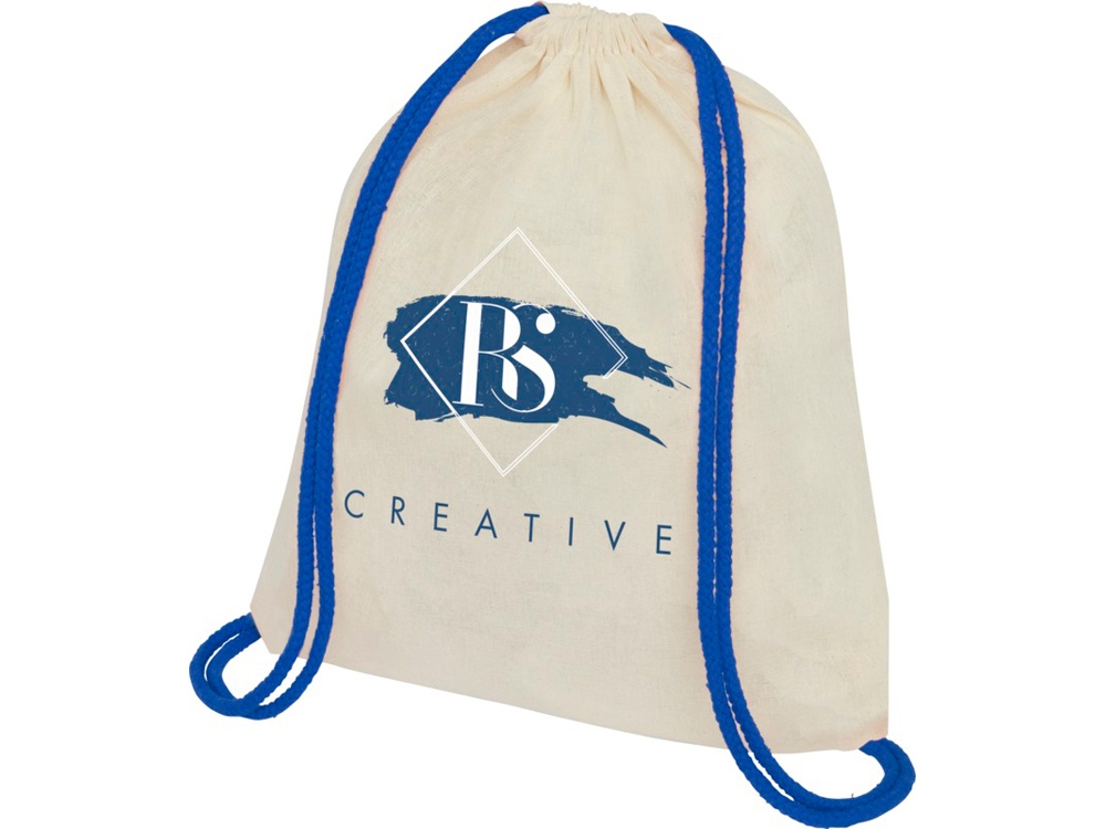 Рюкзак со шнурком Oregon, имеет цветные веревки, изготовлен из хлопка 100 г/м2, бежевый/синий