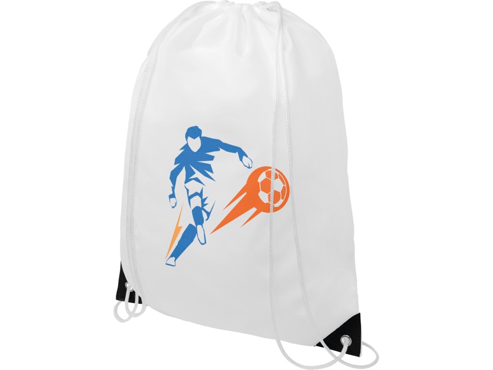 Рюкзак со шнурком и главным отделением на шнуровке белого цвета. Имеет цветные укрепленные углы. Прочность до 5 кг.