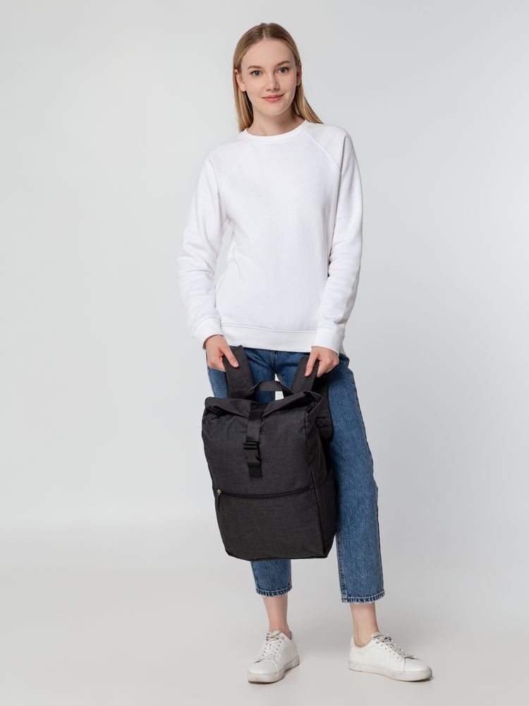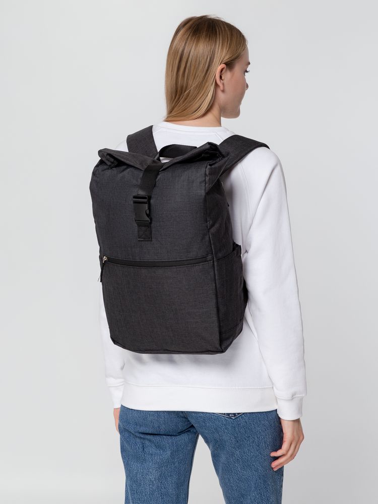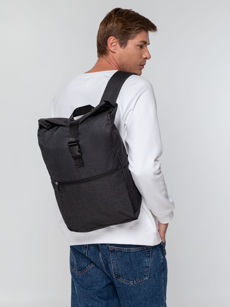 Стильный городской рюкзак для ноутбука в формате роллтоп — его верхняя часть закручивается и подворачивается под ленту с застежкой «фастекс».