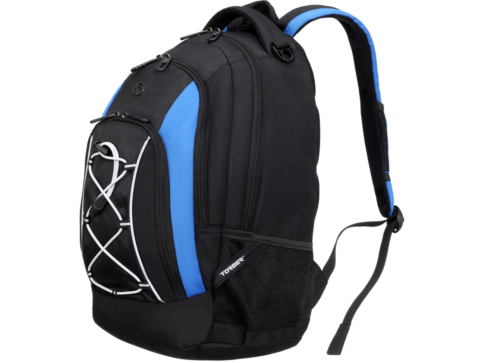 Рюкзак TORBER ROCKIT с отделением для ноутбука 15, черный/синий, полиэстер, 33х19х45 см, 28 л