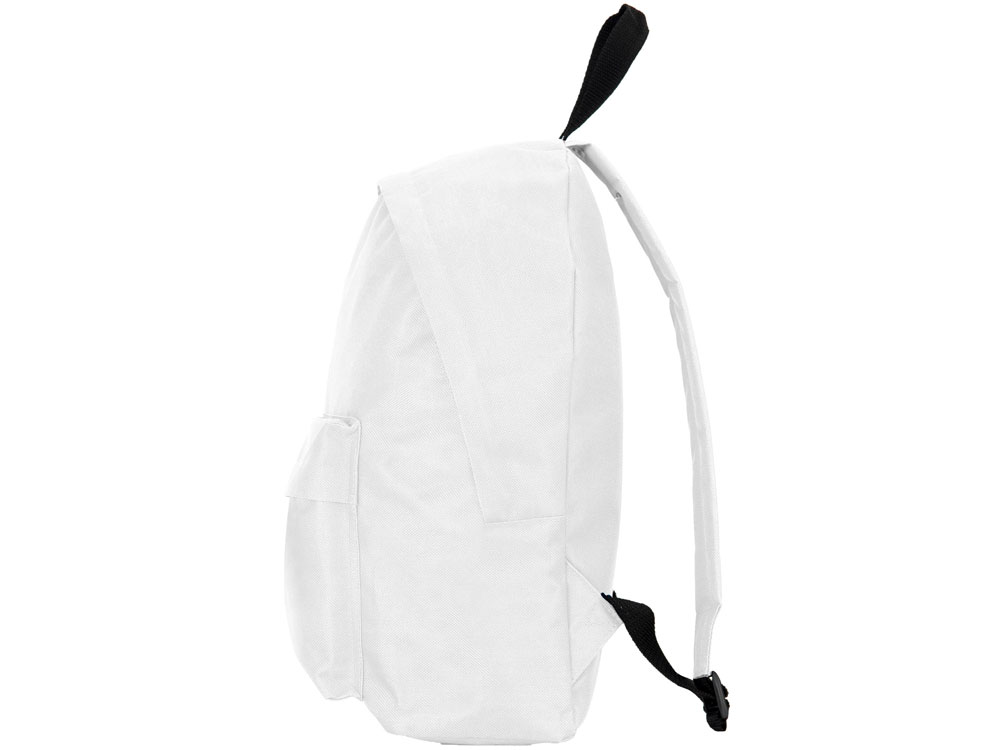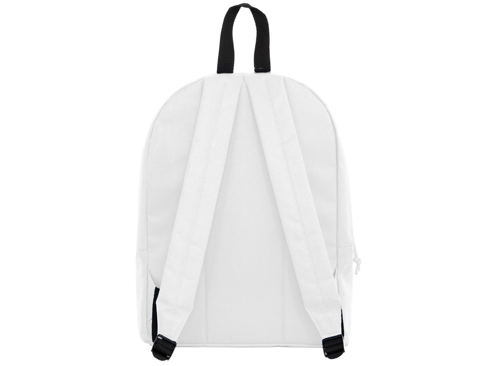Базовый рюкзак из прочной ткани. Двойной плечевой ремень и контрастная ручка. Два кармана: основной и один спереди с молниями, клапанами и бегунками в тон