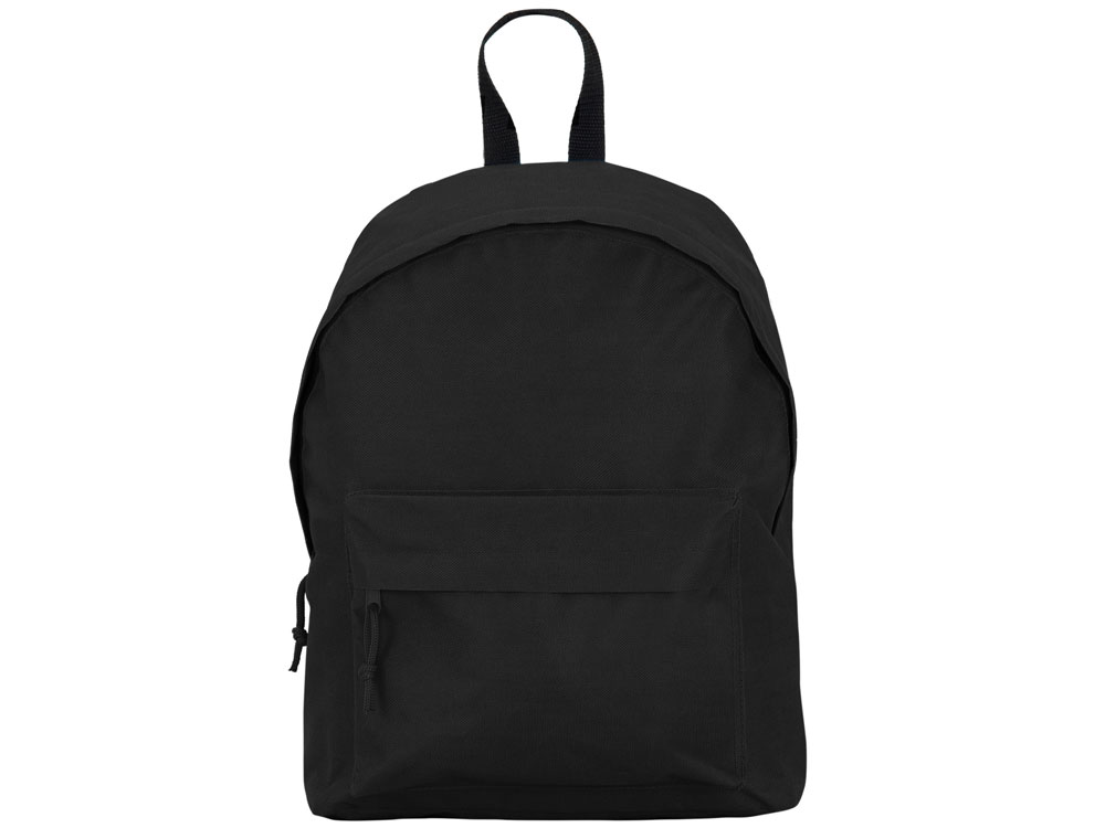Базовый рюкзак из прочной ткани. Двойной плечевой ремень и контрастная ручка. Два кармана: основной и один спереди с молниями, клапанами и бегунками в тон
