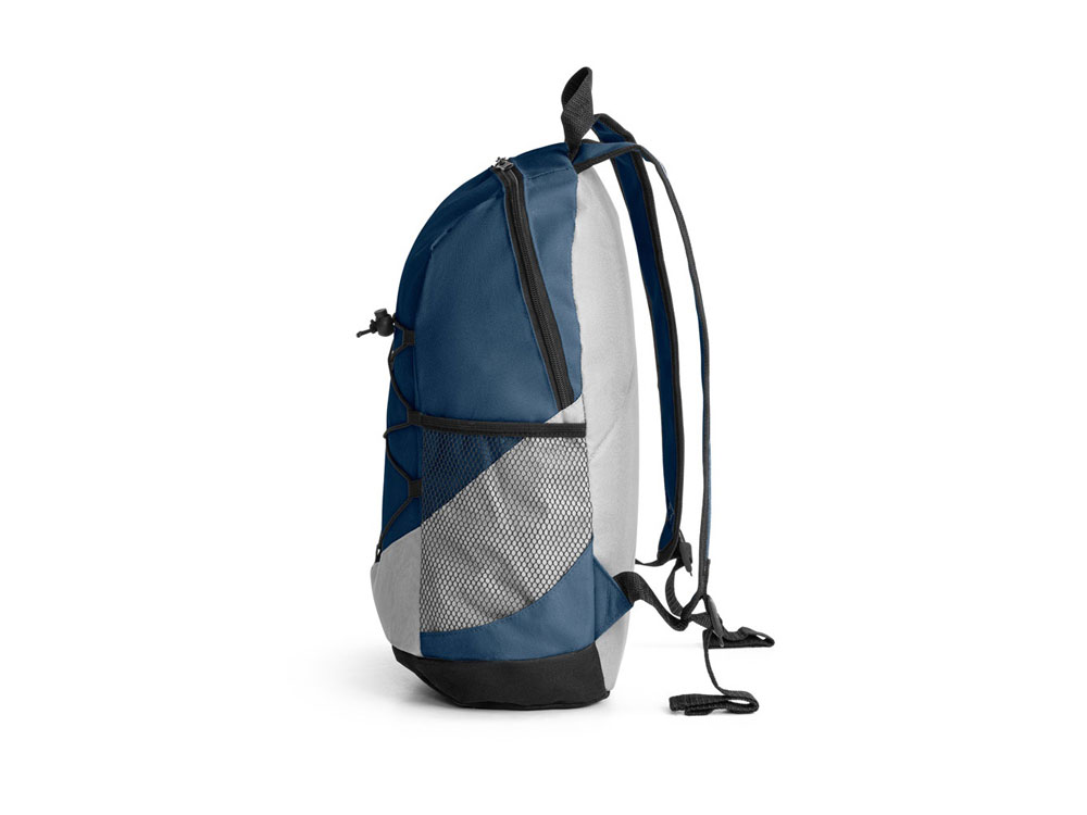 Рюкзак из 600D с боковыми карманами из сетки и одним внутренним. Задняя часть и плечевые ручки с набивкой. 250 x 420 x 180 мм