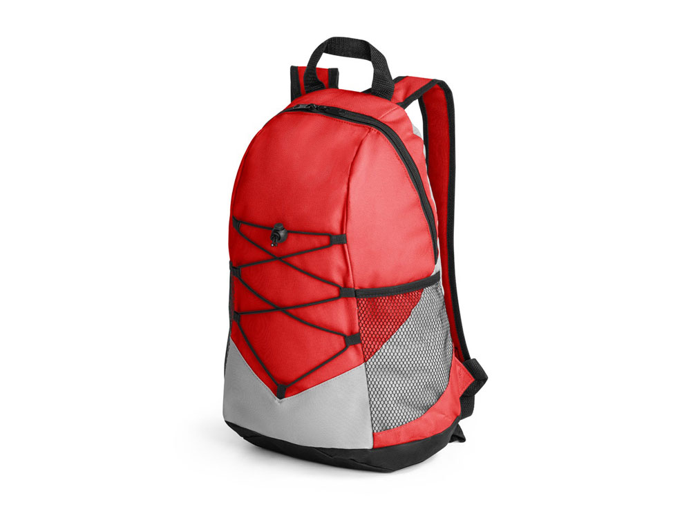 Рюкзак из 600D с боковыми карманами из сетки и одним внутренним. Задняя часть и плечевые ручки с набивкой. 250 x 420 x 180 мм