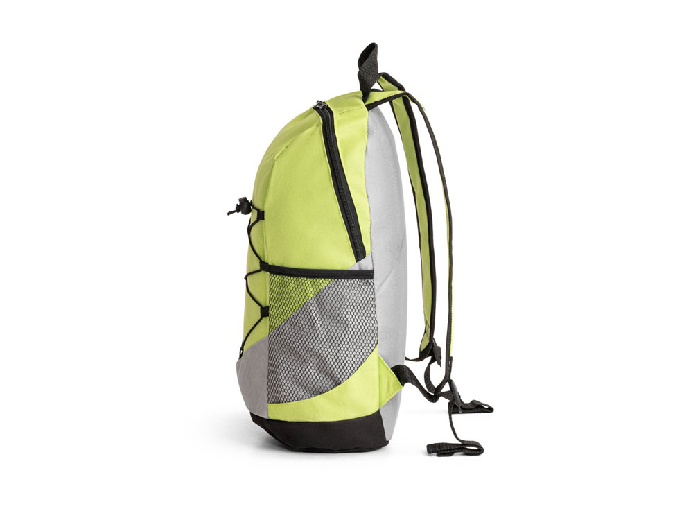 Рюкзак из 600D с боковыми карманами из сетки и одним внутренним. Задняя часть и плечевые ручки с набивкой. 250 x 420 x 180 мм