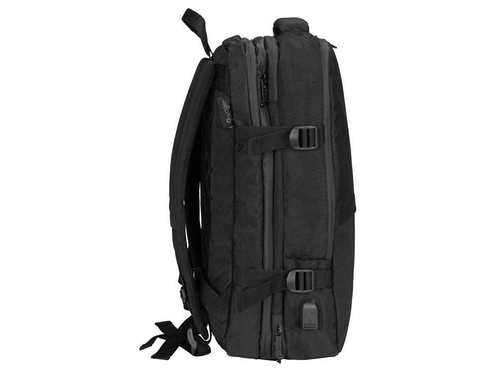 Идеальное решение для деловых поездок и путешествий в любую погоду - поместится все необходимое - от планшета и ноутбука до личных вещей и одежды. С рюкзаком можно ездить в любую погоду, потому что он изготовлен из водостойкого материала и снабжен водонепроницаемыми молниями. С помощью 4-х боковых фиксаторов вместительный рюкзак трансформируется в компактную сумку.