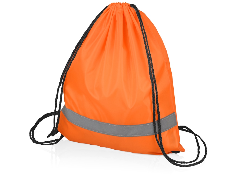 Рюкзак-мешок со светоотражающей полосой и черными шнурками.