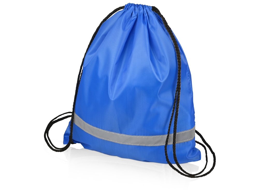 Рюкзак-мешок со светоотражающей полосой и черными шнурками.