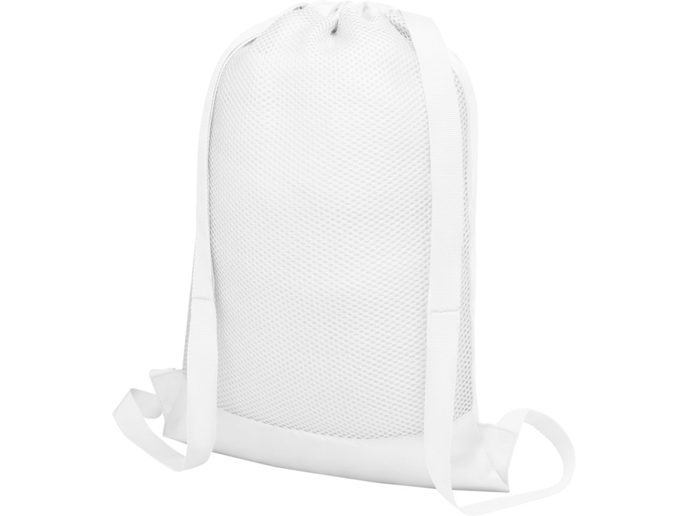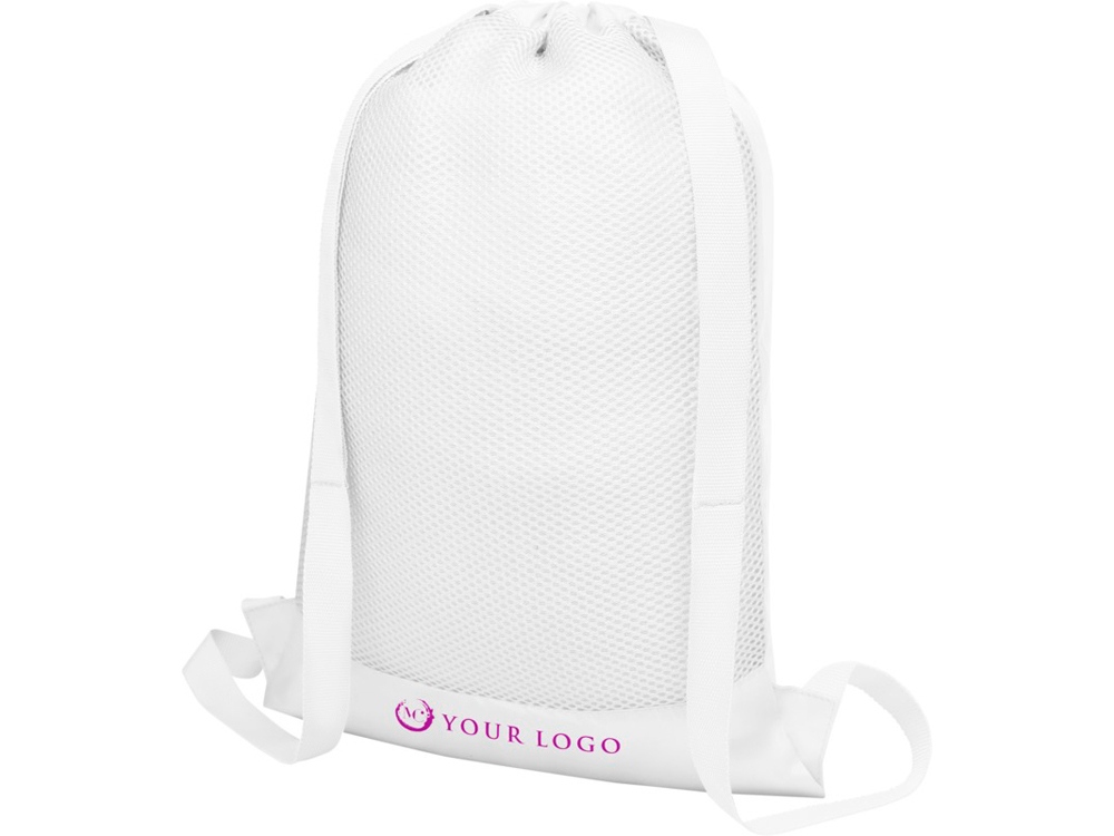 Рюкзак со шнурком и главным отделением на шнуровке в цвет изделия. Имеет большие регулируемые плечевые ремни, изготовлен из полиэстеровой сетки. Прочность до 5 кг.