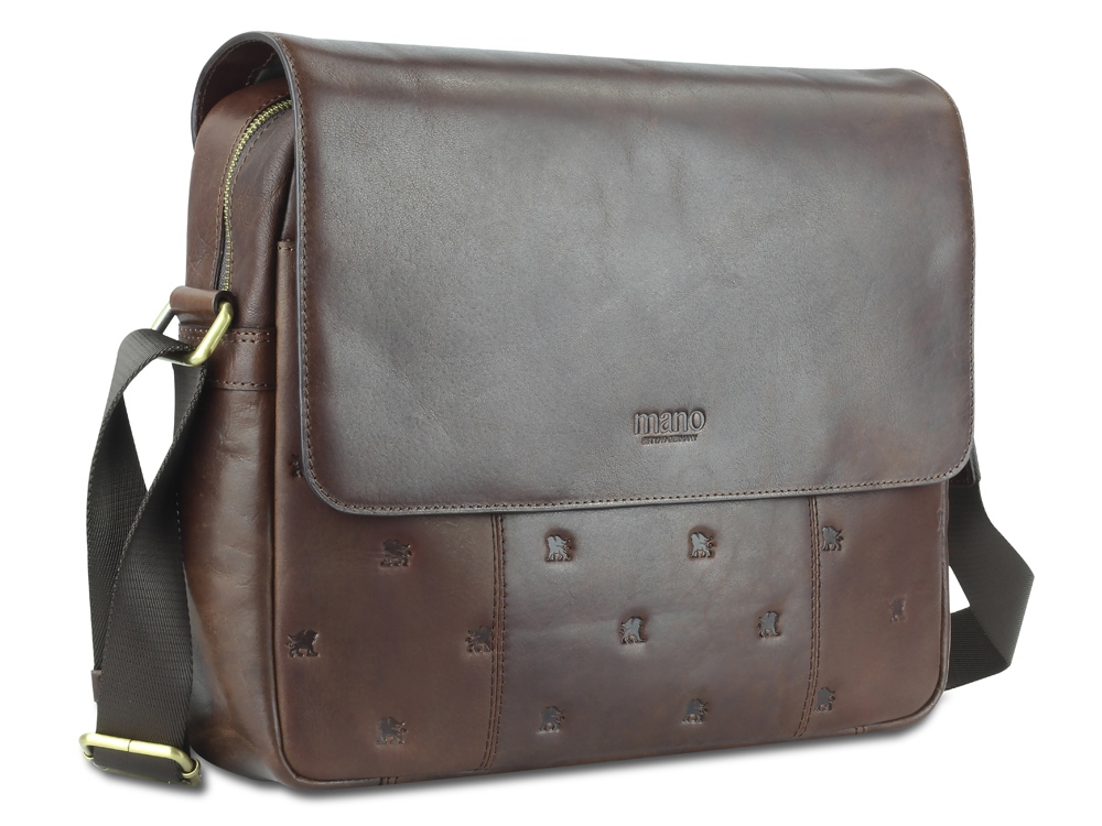 Сумка через плечо Mano Don Leon, натуральная кожа в коричневом цвете, 38 х 30 х 7 см