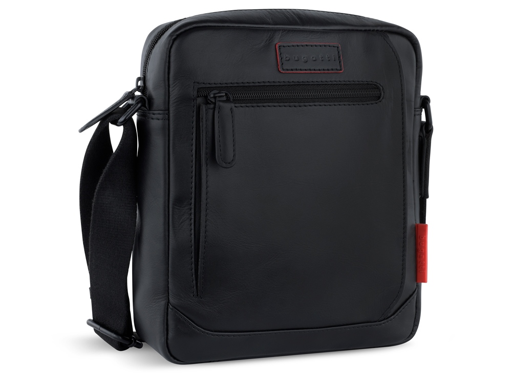 Сумка наплечная мужская BUGATTI Clark, чёрная, воловья кожа/полиэстер, 21х6,5х24 см, 3 л