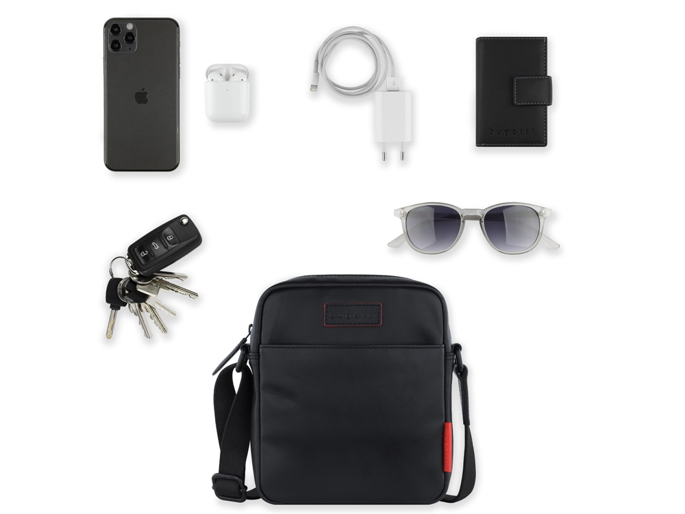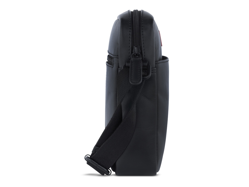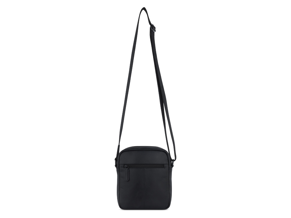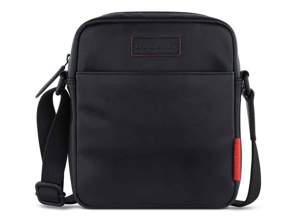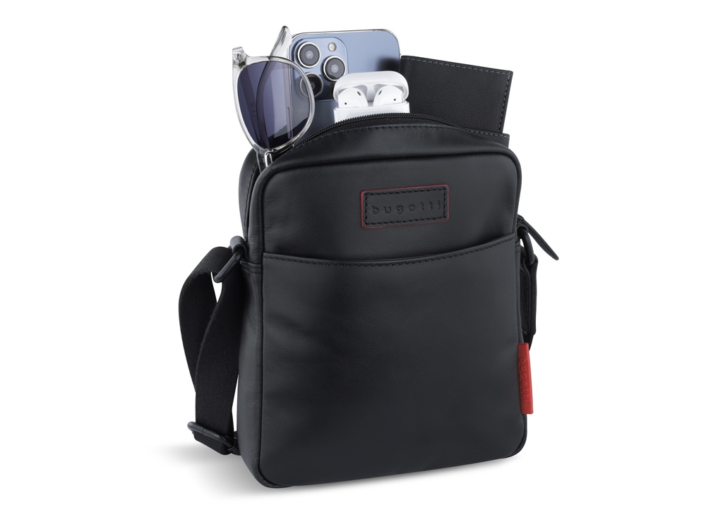 Сумка наплечная мужская BUGATTI Clark, чёрная, воловья кожа/полиэстер, 18х5,5х20 см, 2 л