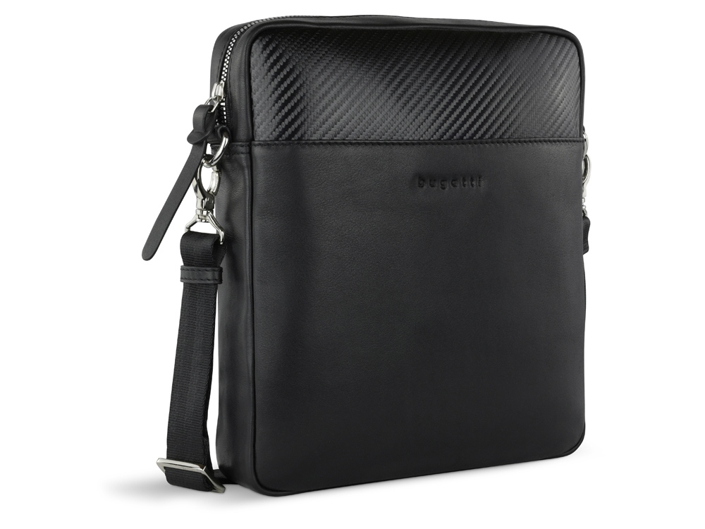 Сумка наплечная мужская BUGATTI Comet, чёрная, воловья кожа/полиэстер, 23,5х5х26 см