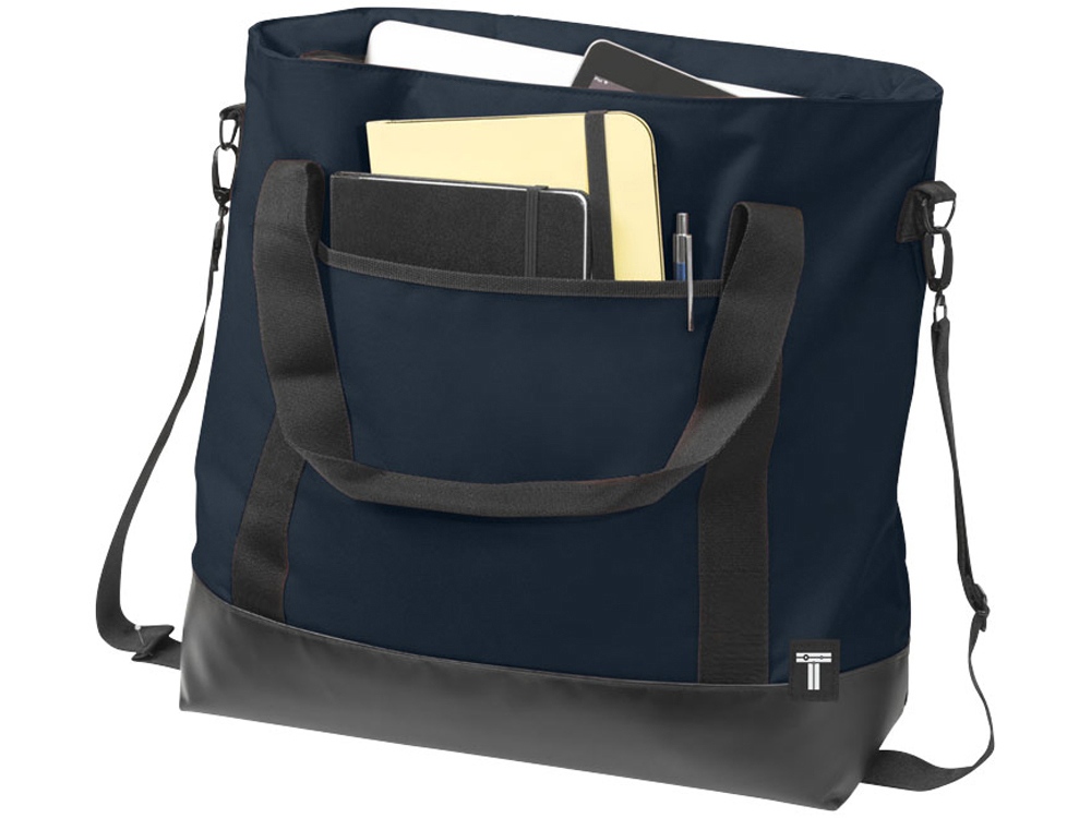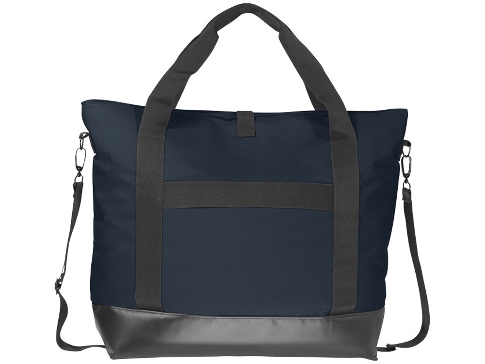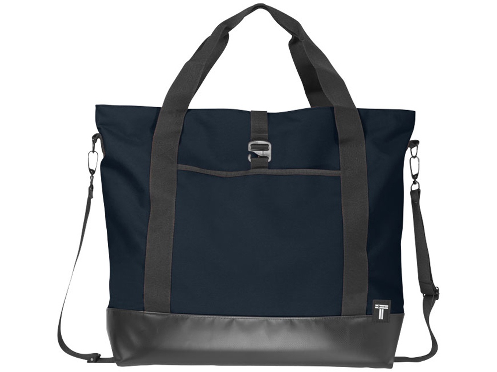 Сумка Weekender для ноутбука 15. Путешествуйте по городу стильно. Тонкая стильная сумка прекрасно подойдет для современных городских условий. Можно носить за ручки или через плечо благодаря съемному ремню. Основное отделение на молнии с отделением для ноутбука 15 и достаточным количеством места для всех нужных вещей. Дополнительное место предоставит боковой карман, в котором можно разместить бутылку или другие мелочи. Дно из тарпаулина для дополнительной прочности и стильного образа. 300d полиэстер с тарпаулином.