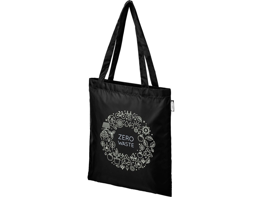 Прочная сумка, изготовленная на 100% из переработанного пластика, предназначенного для повторного использования, что способствует уменьшению количества пластиковых отходов. Имеет две ручки, высота в раскрытом состоянии — 27 см. Выдерживает вес до 10 кг.