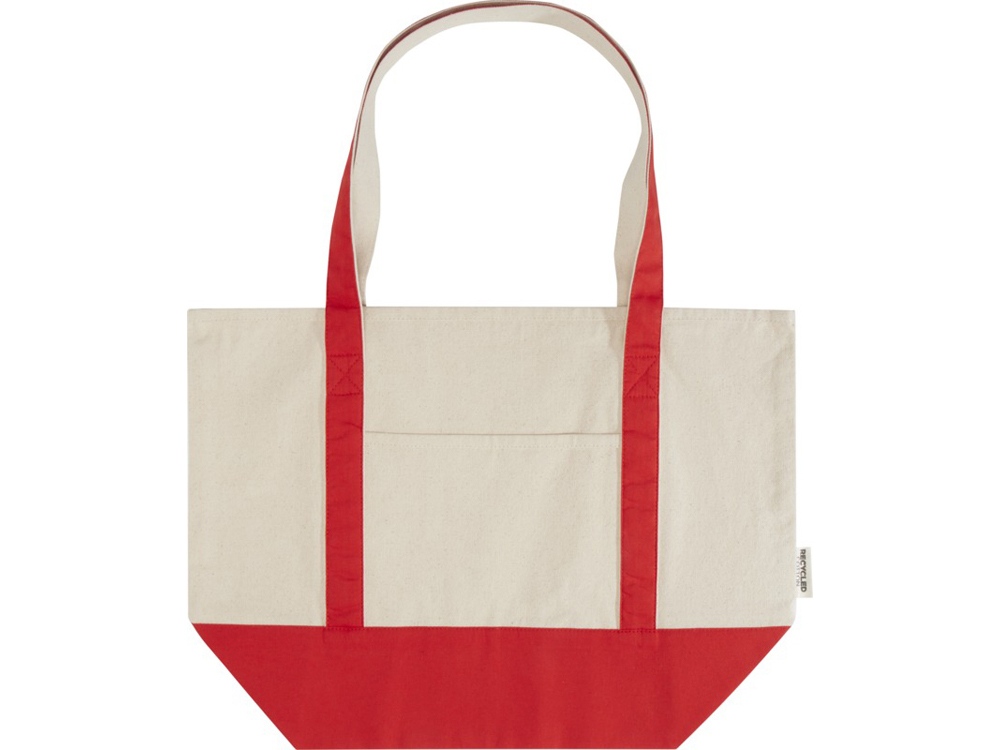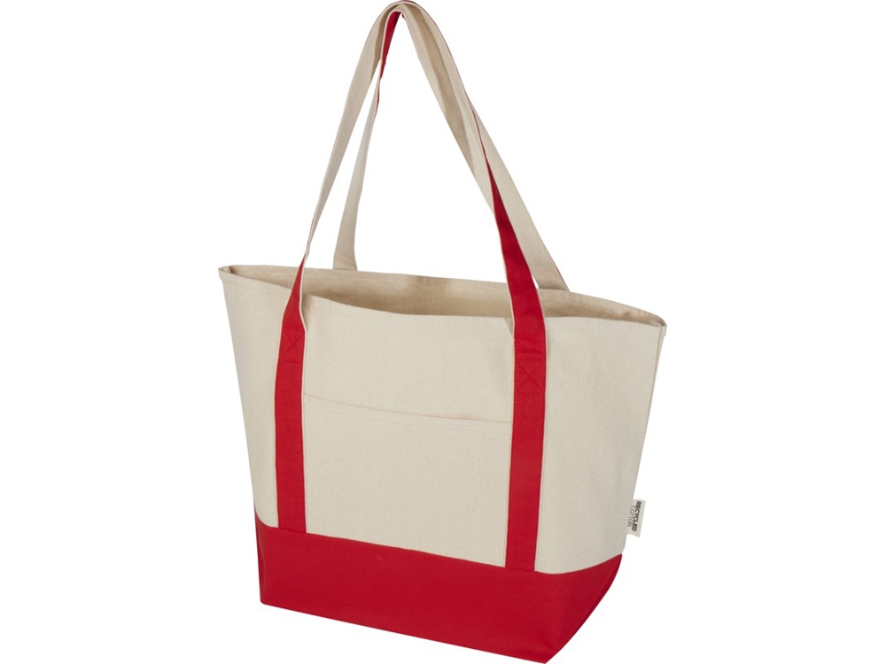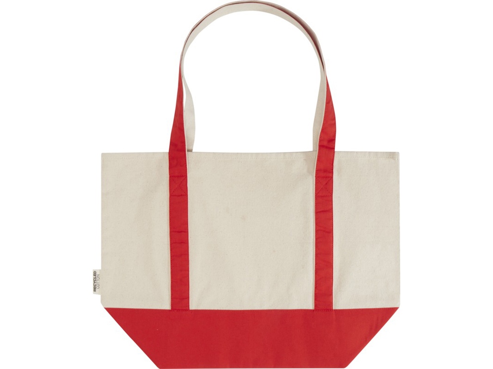 Sam эко- сумка из переработанного хлопка, сертифицированного согласно GRS, плотностью 320 г/м² - Красный / Натуральный