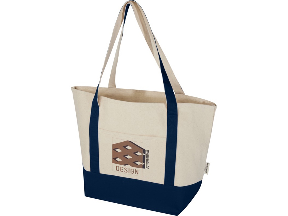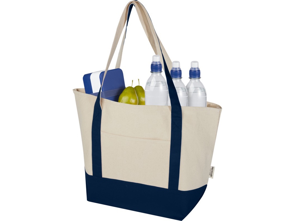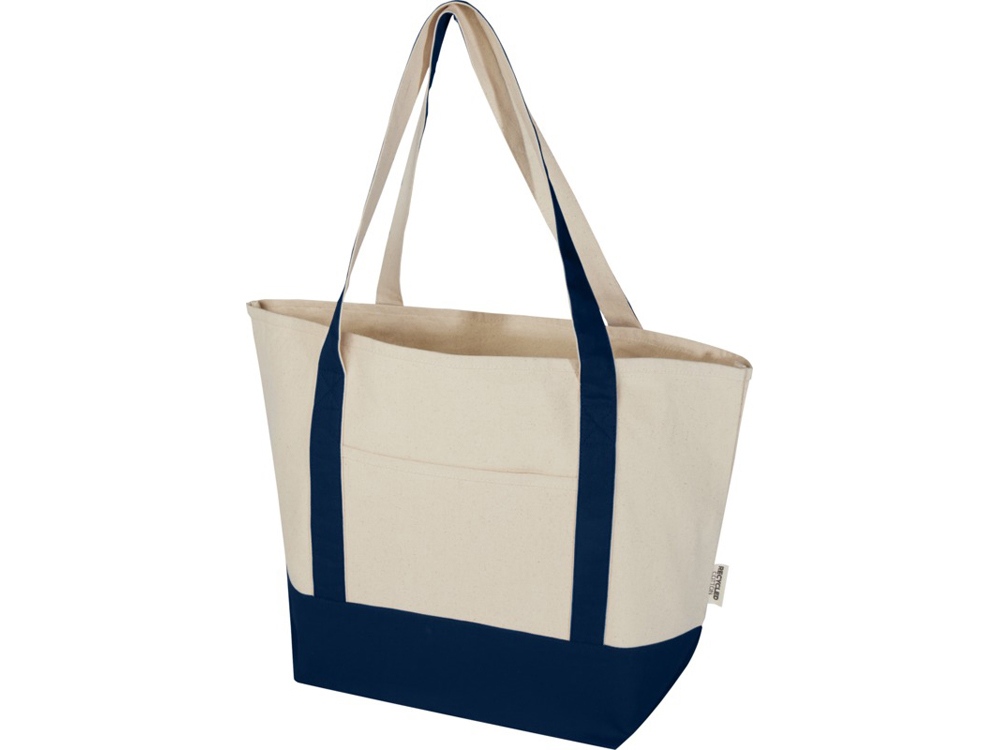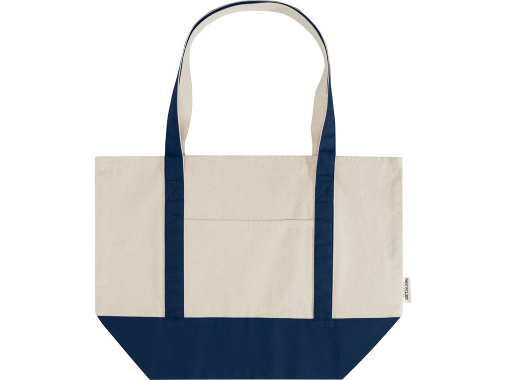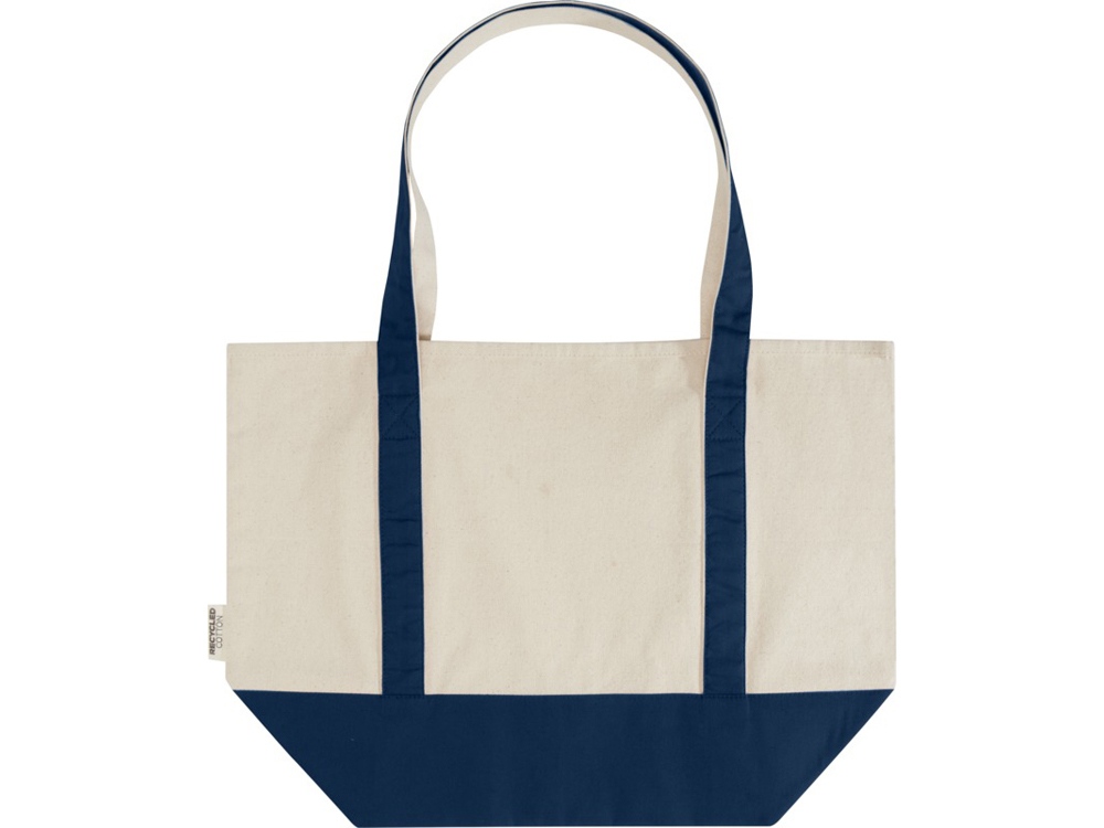 Sam эко- сумка из переработанного хлопка, сертифицированного согласно GRS, плотностью 320 г/м² - Темно - синий / Натуральный