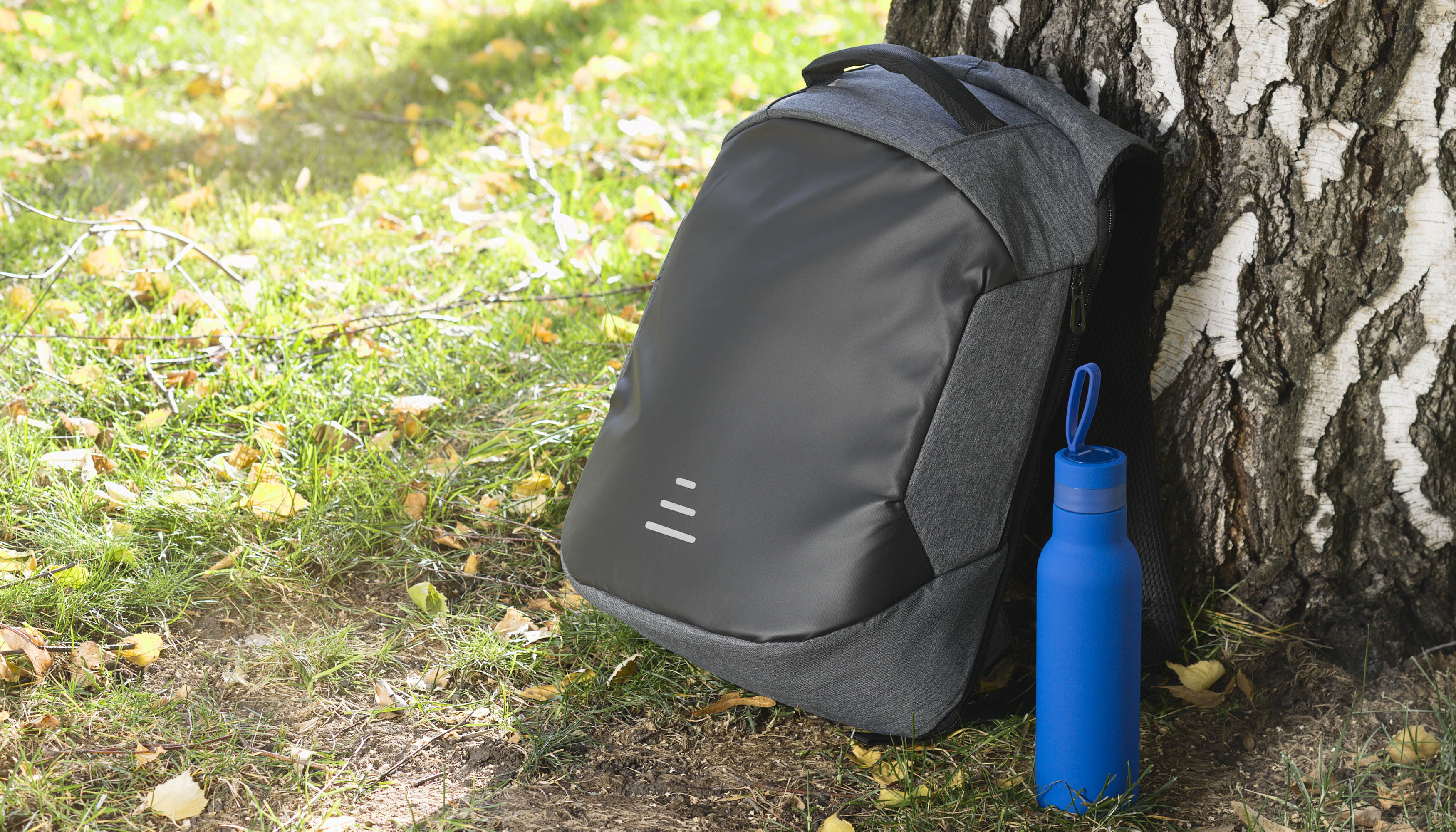 Рюкзак "Holiday" с USB разъемом и защитой от кражи, серый с черным