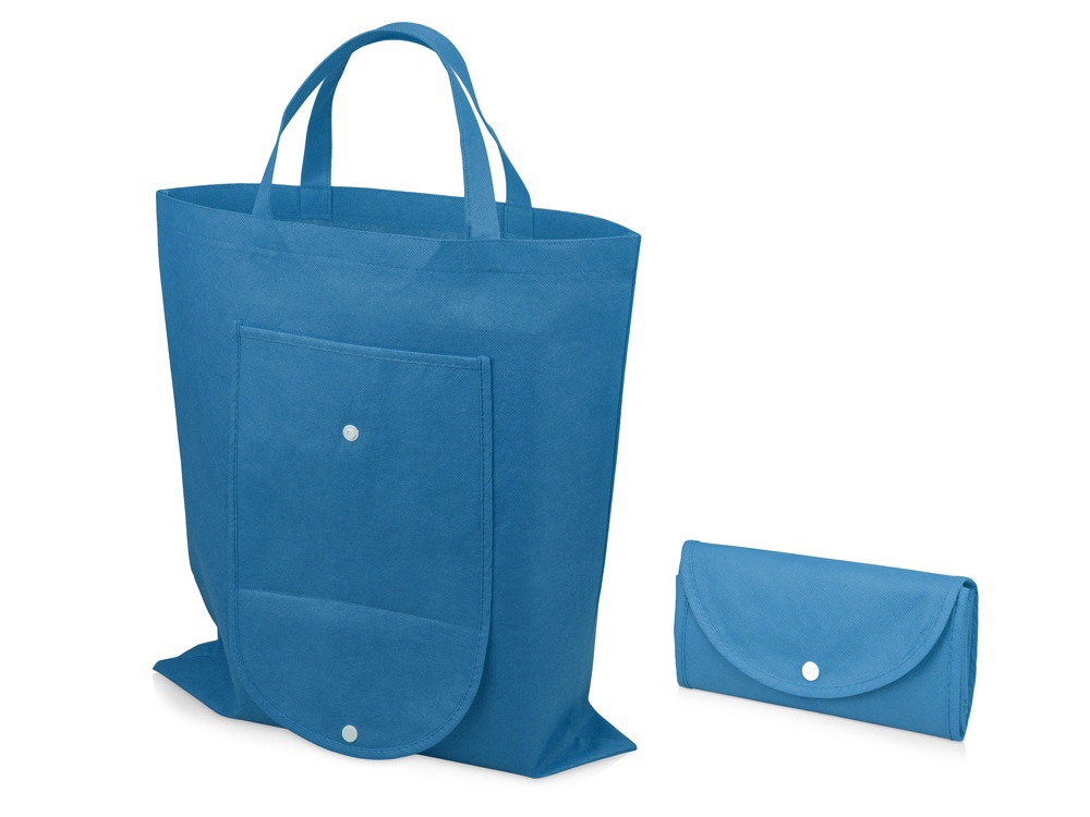 Вместительная складная сумка из нетканого материала с открытым основным отделением и карманом на пластиковой кнопке спереди. Многоразовая сумка- отличная альтернатива пластиковому пакету. Высота ручек 15 см.