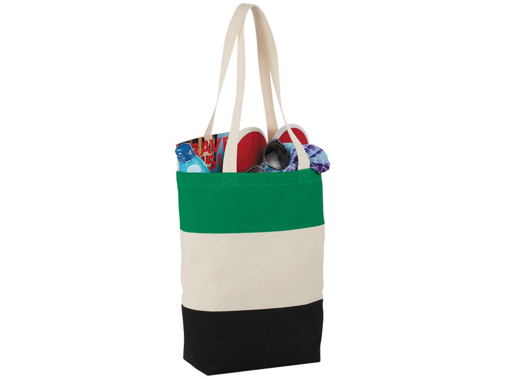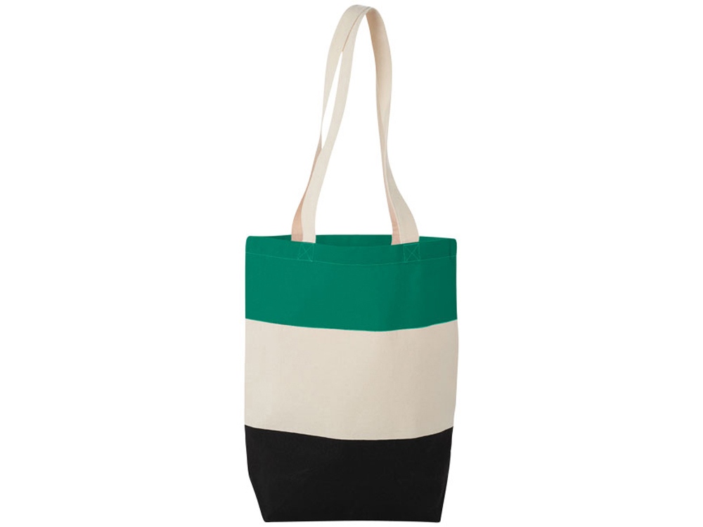 Хлопковая сумка Colour Block. Хлопковая сумка (227 г/м²) на плечо с открытым основным отделением. Цветные вставки делают сумку привлекательной для покупок, на пляж и для повседневного использования. Двойные ручки 31 см. Хлопок 227 г/м². Трафаретная печать (1 цвет (цветные изделия)) на данный товар осуществляется бесплатно. Оплачивается только настройка оборудования в размере 8200 рублей на весь тираж.