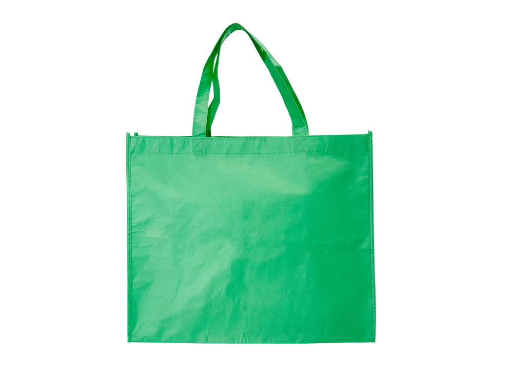 Многоразовая сумка для покупок с матовой ламинированной отделкой. Изготовлена из прочного RPET с усиленными ручками и соответствующей окантовкой.