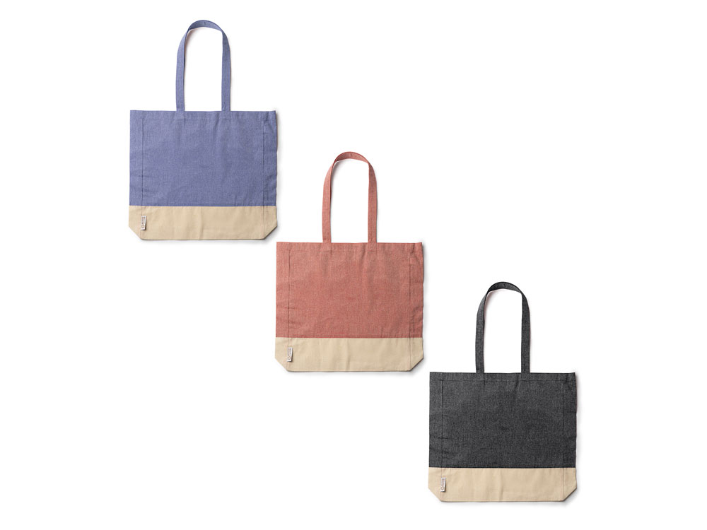Сумка из переработанного хлопка с отделкой из натурального хлопка плотностью 120 г/м² с донной вставкой. Усиленные ручки длиной 70±2 см.