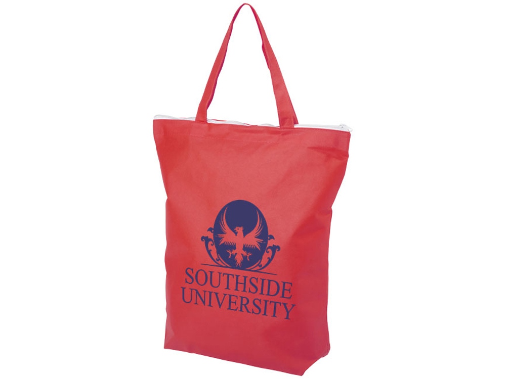 Нетканая сумка-тоут Privy с короткими ручками и застежкой-молнией. Нетканая прошитая сумка с застежкой-молнией и ручками длиной 19 см. Удобная модель яркого цвета. Нетканый полипропилен. Трафаретная печать (1 цвет (цветные изделия)) на данный товар осуществляется бесплатно. Оплачивается только настройка оборудования в размере 8200 рублей на весь тираж.