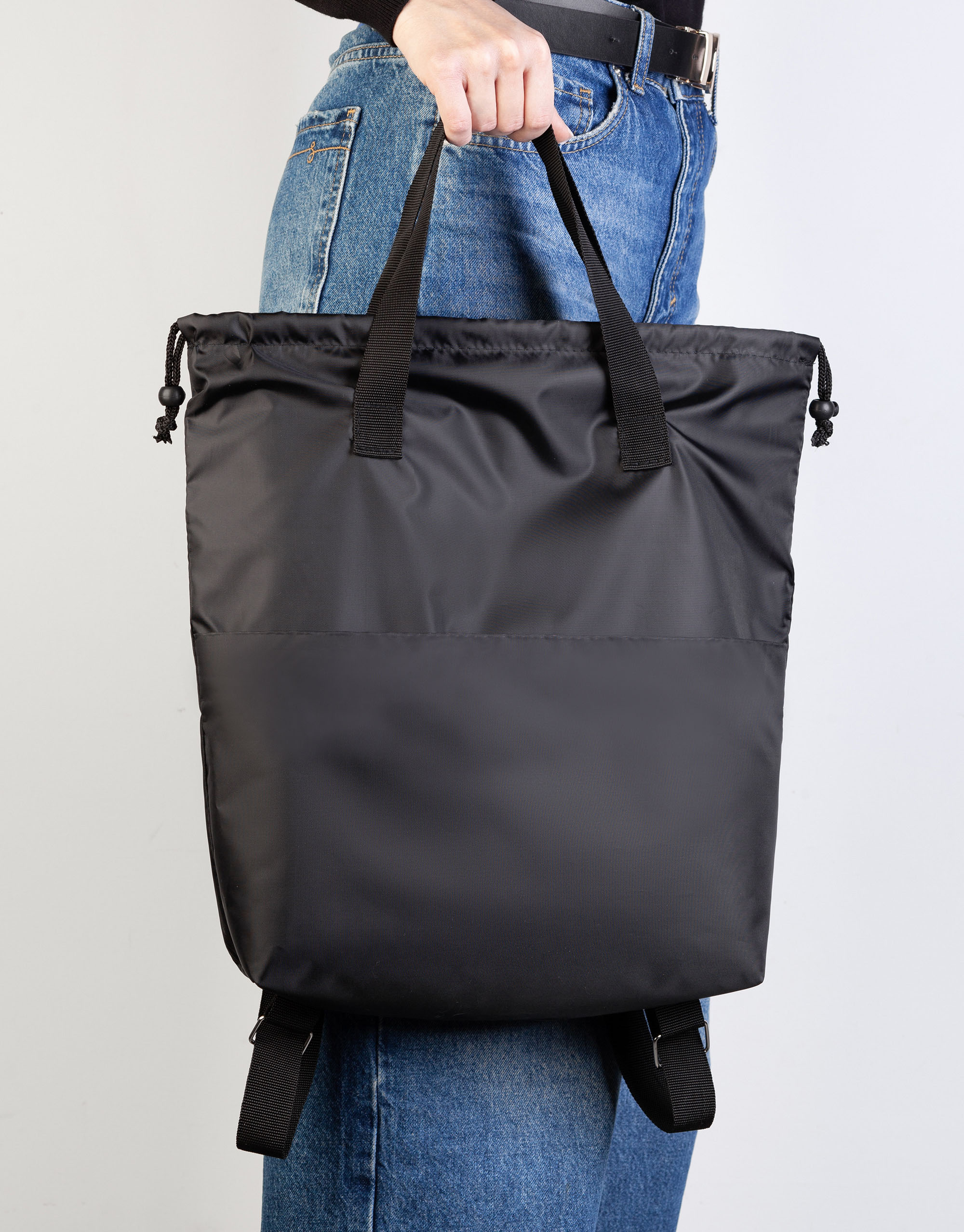 Вместительный передний карман на липучке для быстрого доступа к мелким аксессуарам. Основное отделение на шнурке с аксельбантами (стопперы, фиксаторы) для быстрого закрытия.
