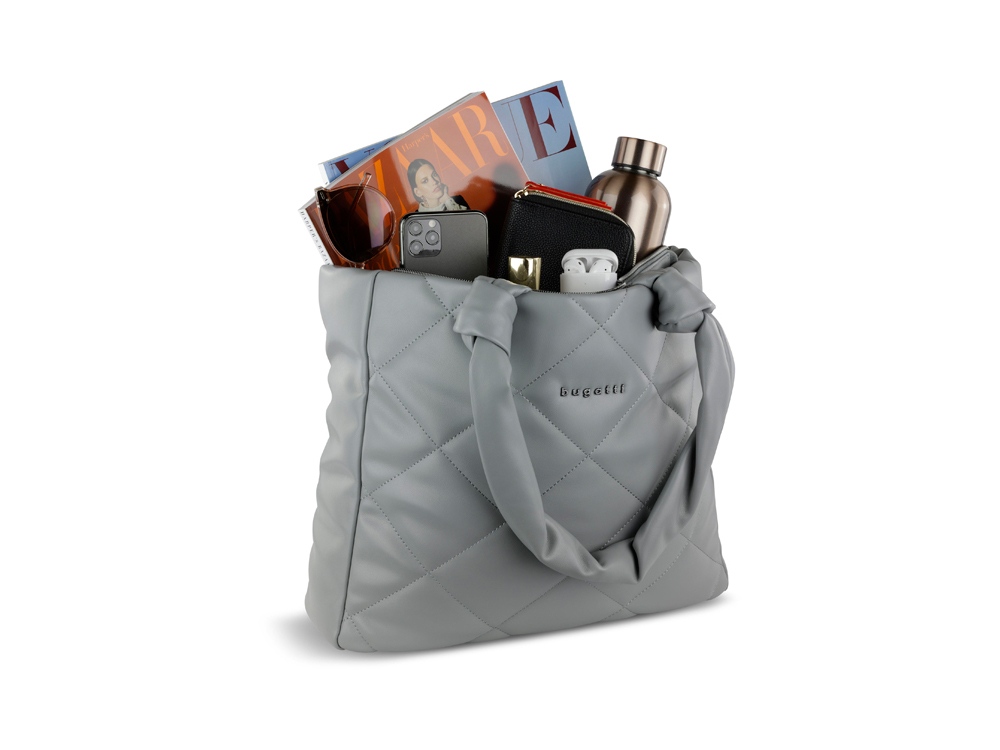 Сумка-шоппер BUGATTI Cara, серая, полиуретан, 43х11х32 см, 10 л
