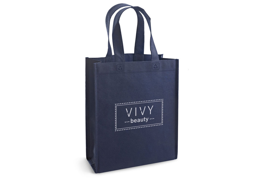 Сумка из спанбонда (80 г/м²) с ручками длиной 30 см. Вид нанесения, рекомендуемый поставщиком: трансфер, текстильный принтер