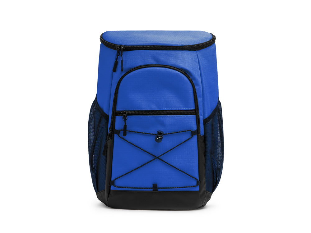 Рюкзак-холодильник из полиэстера 210D Ripstop. Основное отделение и передний карманы с изотермической подкладкой. Переднее отделение на эластичном шнуре и боковые сетчатые карманы.